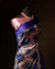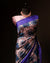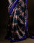 Pure Hand block Printed Dark Blue Raw Silk saree